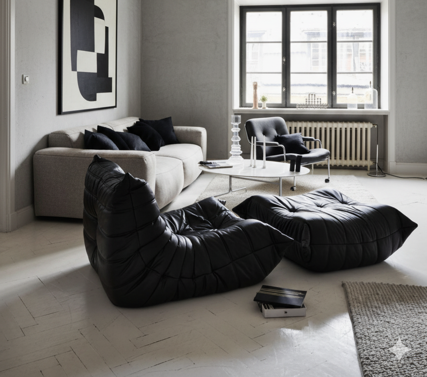 The Togo Sofa, hailed as a “sculpture in foam,” stands as an iconic masterpiece of French modern furniture design. With its futuristic low profile, frameless construction, and all-foam composition, it pioneered a new era in upholstered furniture design.