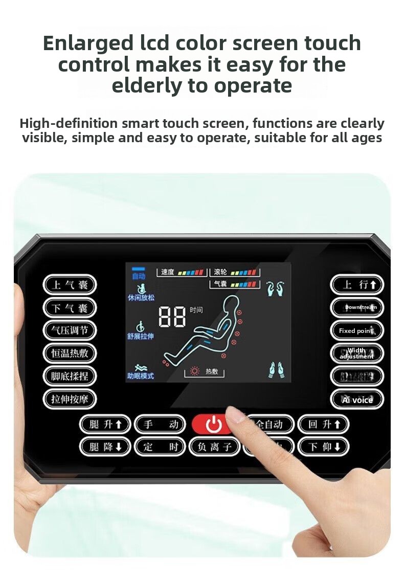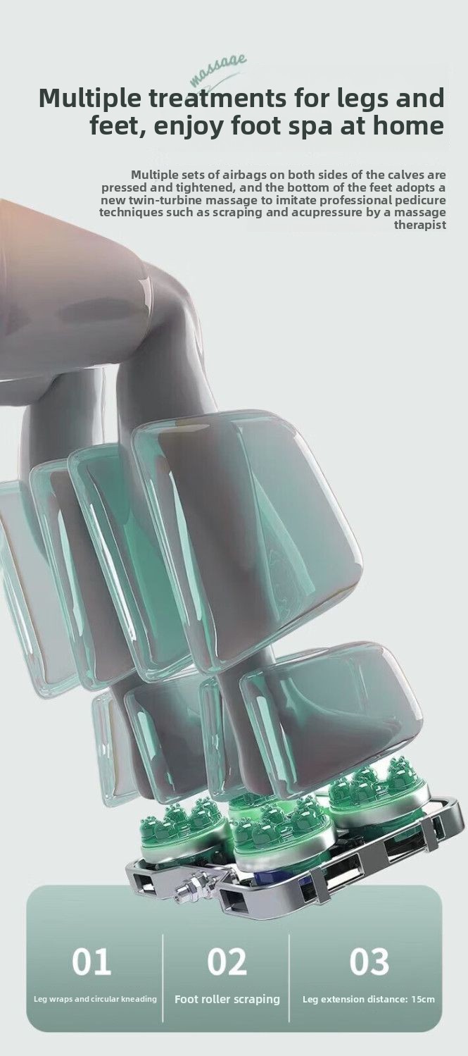 - Leg & Foot Care — Multi-group calf airbags and dual-turbine rollers mimic professional foot reflexology.