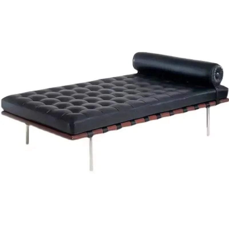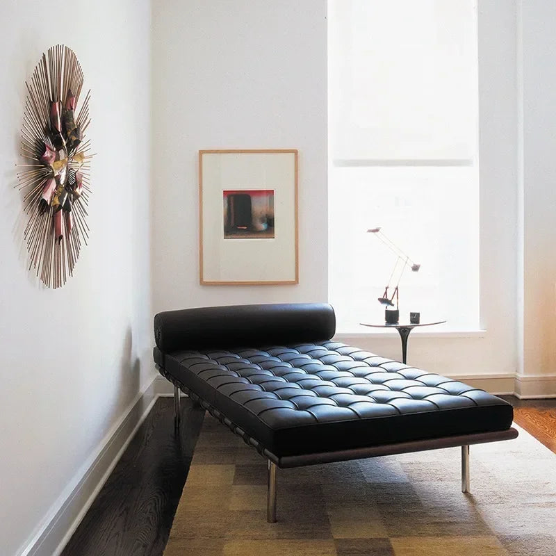 The Barcelona sofa bed is part of the Knoll Barcelona collection designed by Ludwig Mies van der Rohe for the King and Queen of Spain. Its luxurious leather and fluid lines make it unforgettable.It masterfully blends modern aesthetics with practical philosophy, offering an ideal solution for compact urban living spaces. With clean, crisp lines and understated neutral tones, it effortlessly complements any home environment, showcasing your exceptional taste.