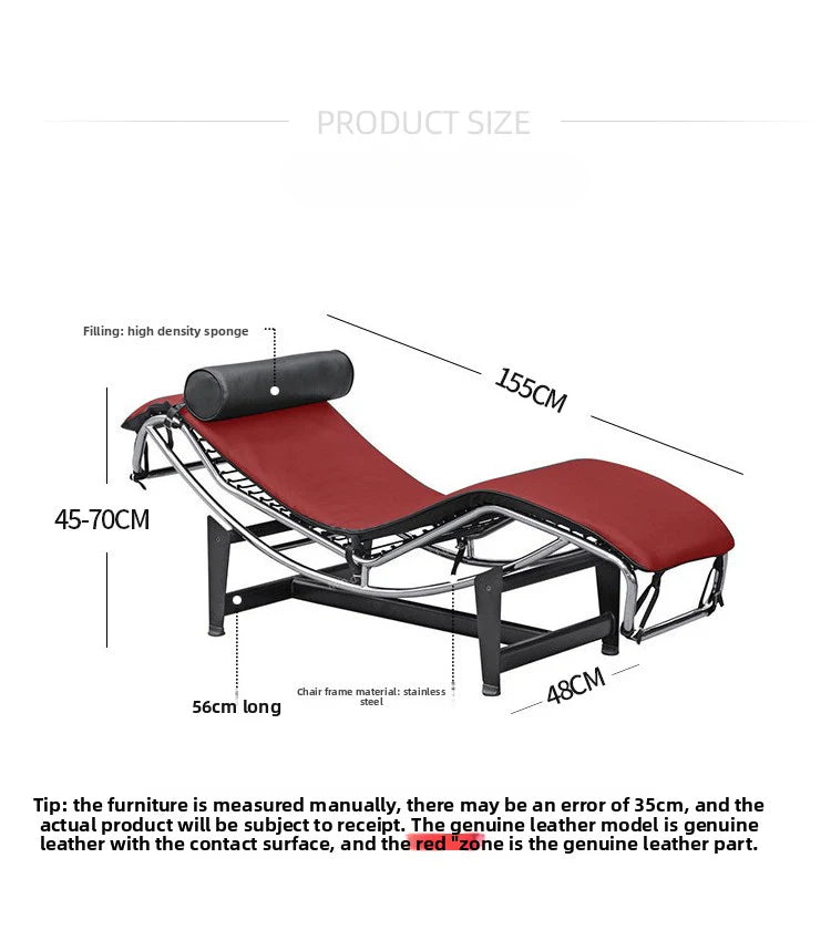 A bold reinterpretation of Le Corbusier’s 1928 modernist classic, the LC4 Chaise Lounge reimagines the timeless silhouette with adjustable ergonomic contours and minimalist sensibility. The seat is upholstered in supple top-grain or PU leather, supported by a polished stainless steel frame and solid base—offering both comfort and visual clarity. Whether for balcony lounging, office napping, or as a statement piece in creative spaces, this iconic chaise adds design depth and Bauhaus elegance to any interior.