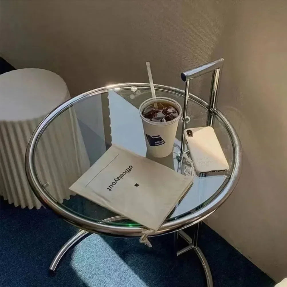 Built with a polished stainless steel frame and a clear tempered glass top, this table combines visual lightness with industrial durability. Slight welding marks and movement during height adjustment are part of its natural character, giving each piece a raw, authentic look that complements minimalist and industrial interiors alike.