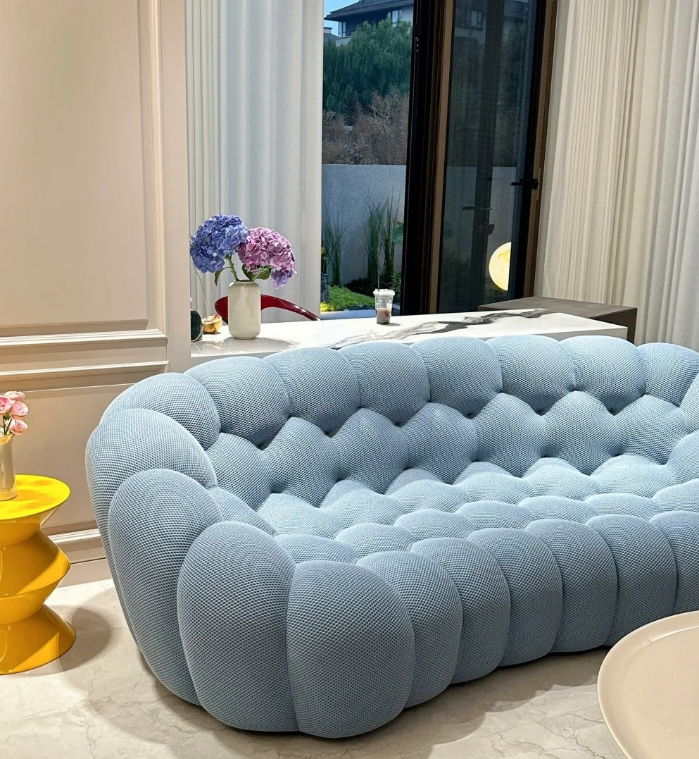 Elevate your space with this showstopping sofa that blends the whimsy of bubble soccer with the timeless elegance of French-Italian design. Inspired by the playful geometry of inflated footballs, this artistic masterpiece redefines modern luxury—soft, sculptural, and utterly captivating.