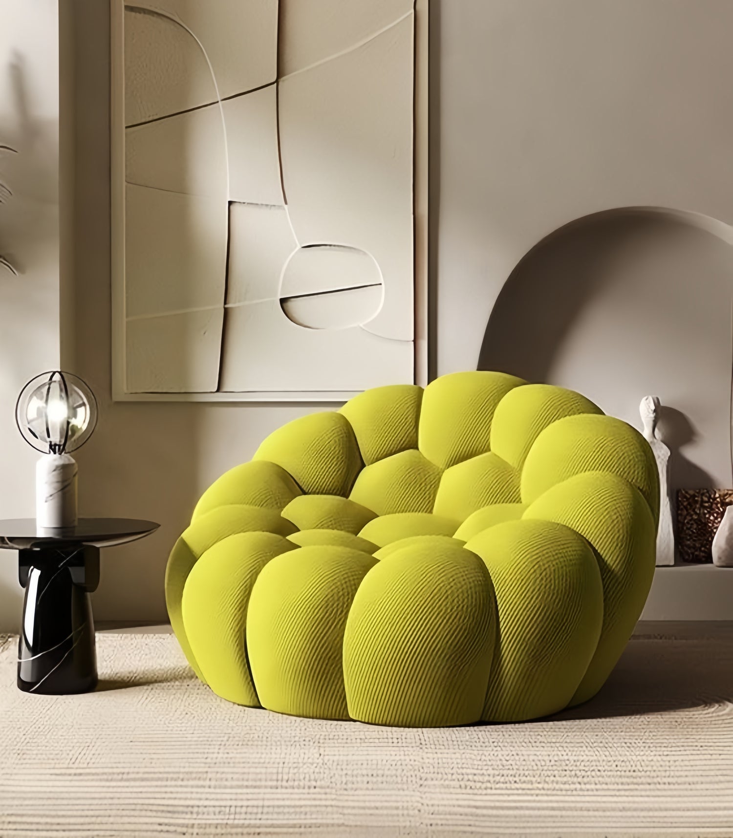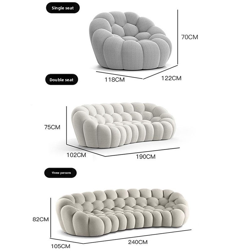 - Modular Flexibility: Designed to adapt to your space, the sofa can be configured as a single unit, a chaise lounge, or combined with matching "bubble" seats (available in vibrant accent colors like emerald green, slate gray, or sunny yellow—inspired by the playful palette of the original collection).