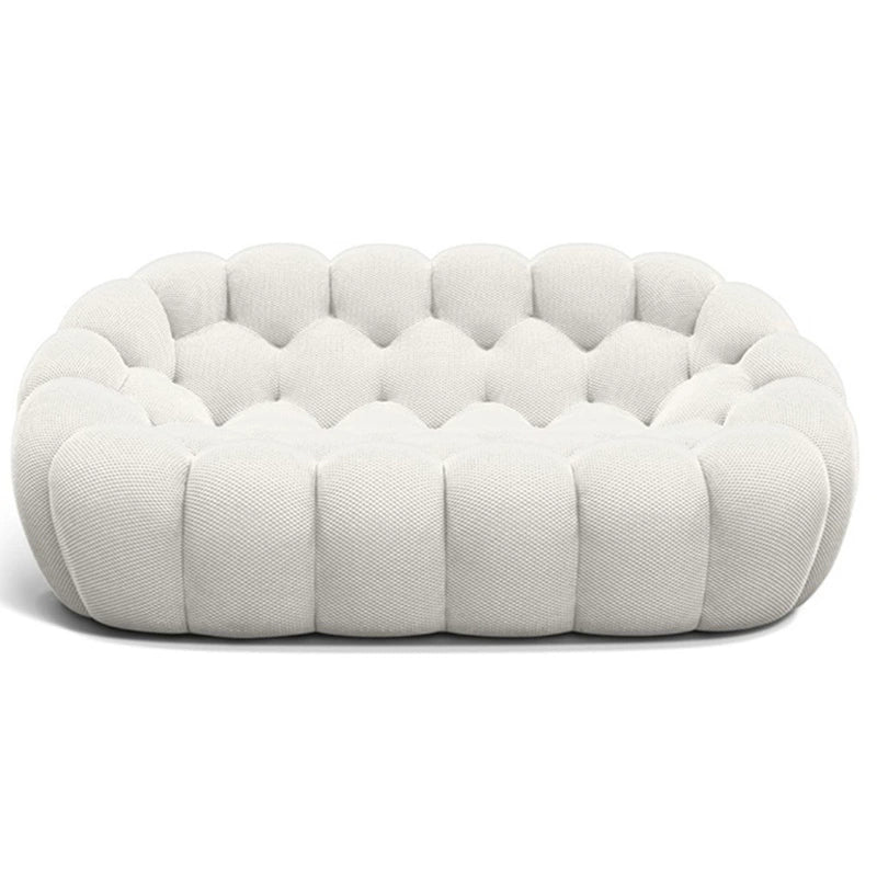French Italian Trending Bubble Soccer Inspired Cream Fabric Designer Artistic Curved Elegant Sofa