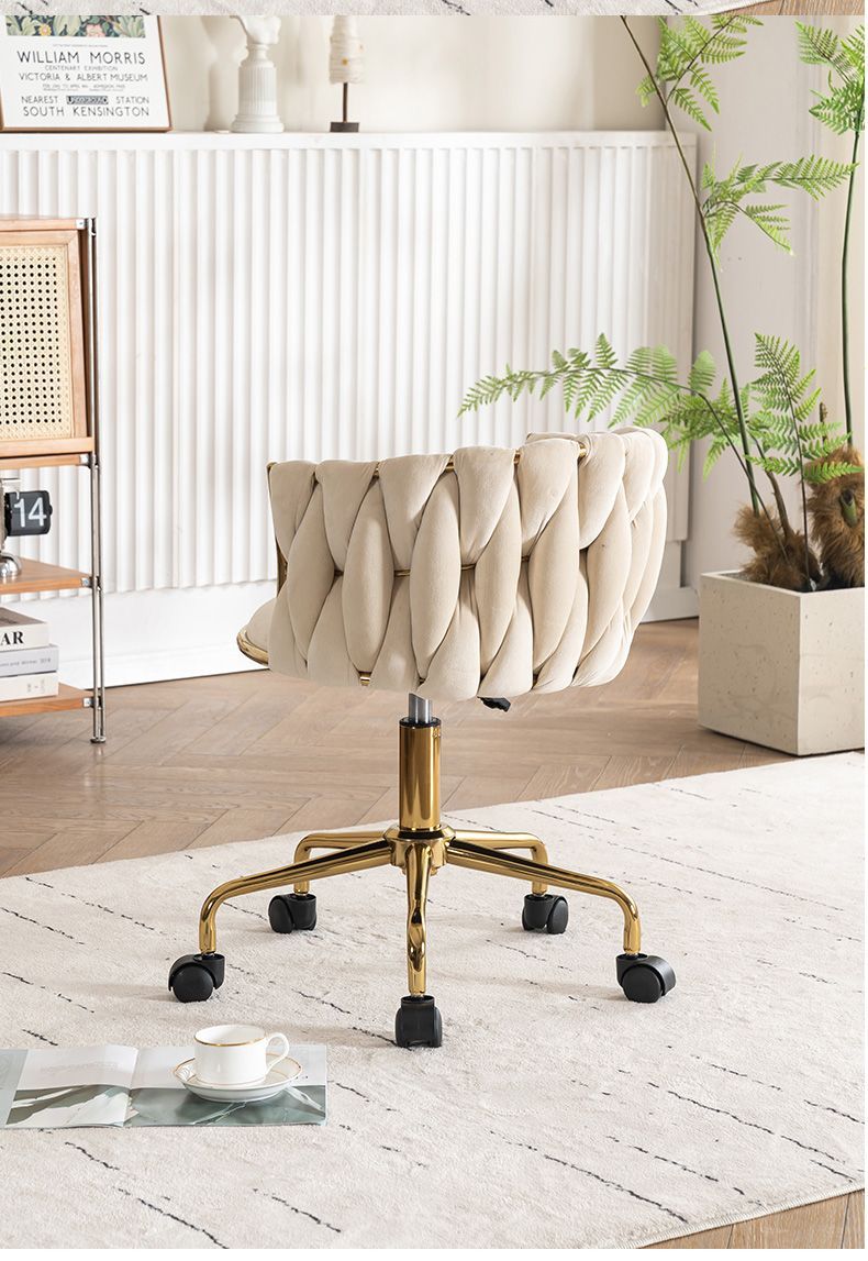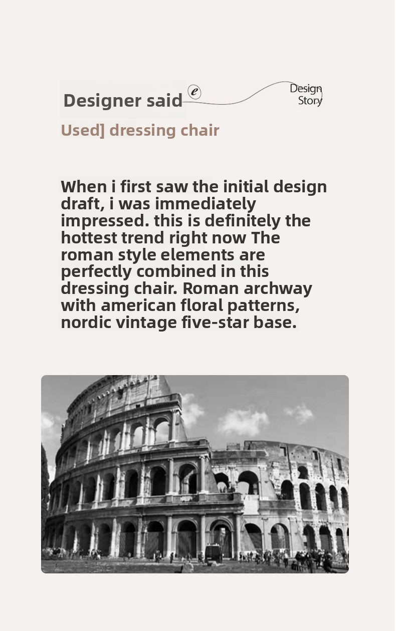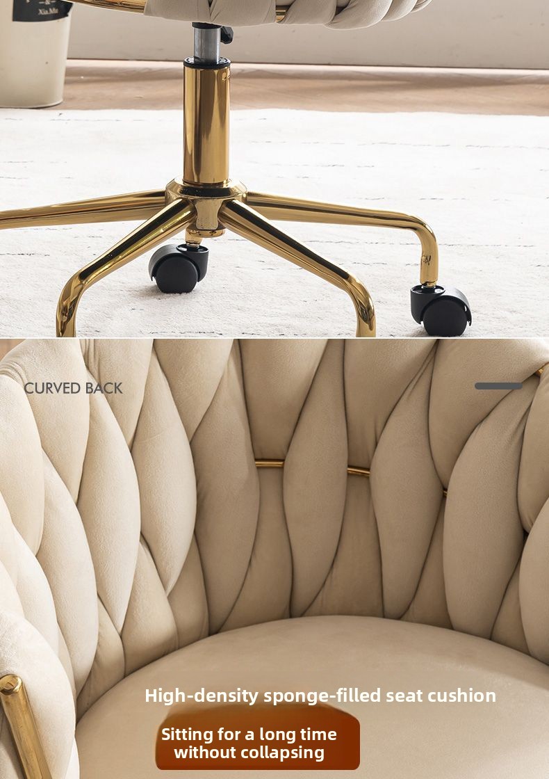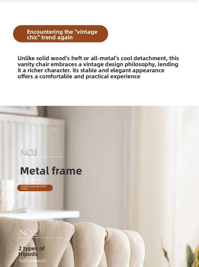 This vintage-inspired dressing chair brings a harmonious balance of elegance and functionality to your space. Its thoughtful design—featuring a sturdy golden five-star base, reinforced carbon steel legs, and an ergonomically curved backrest—offers exceptional support and comfort for long hours of use.