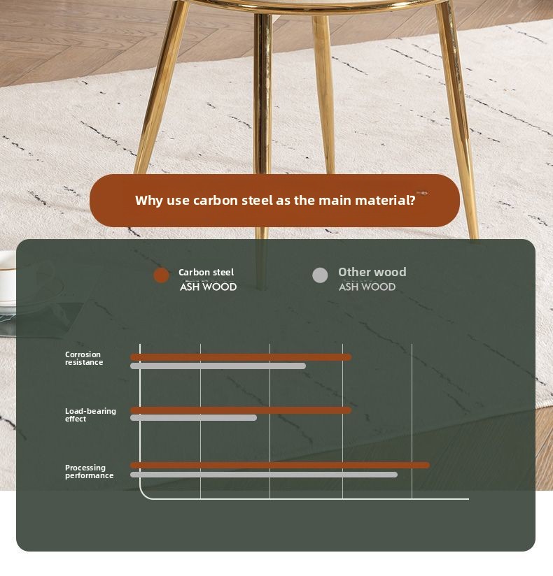 Gold-finished five-star base with reinforced carbon steel legs