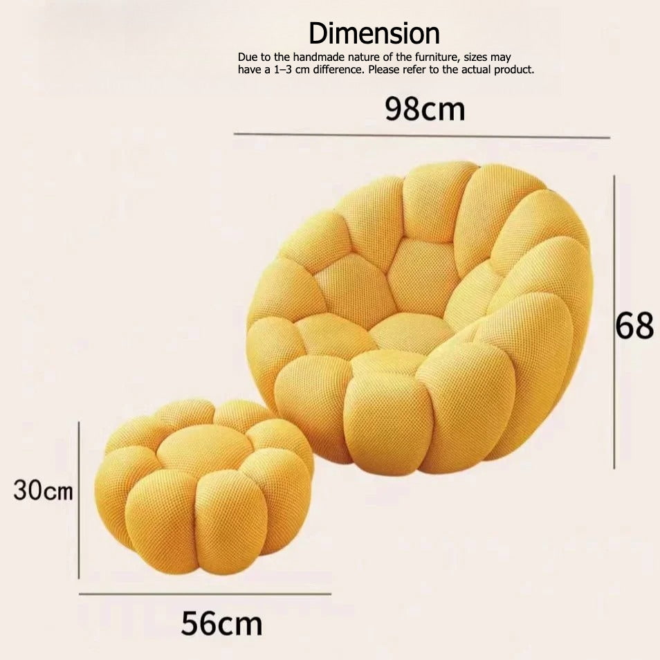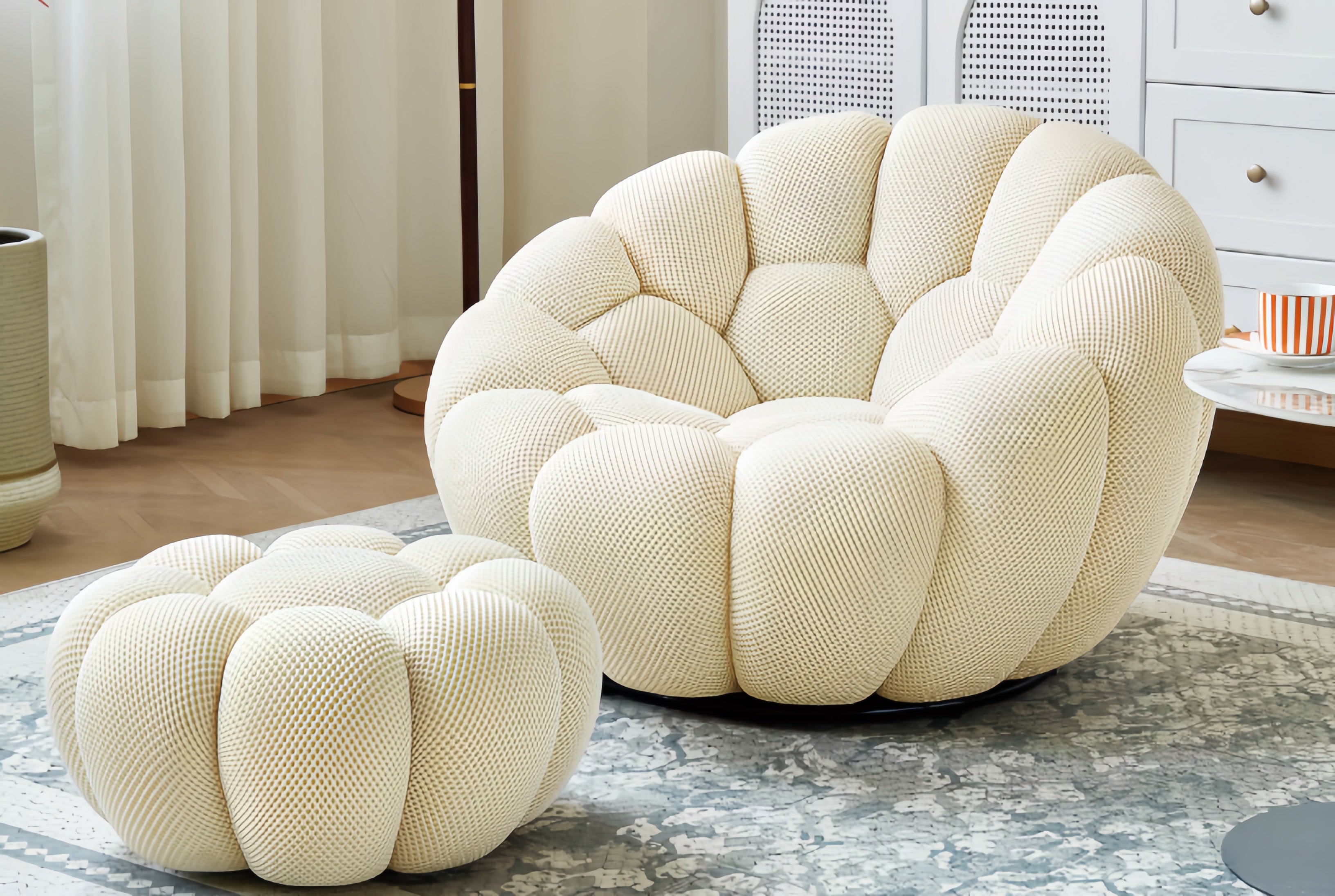 Inspired by sculptural design and playful elegance, the Pumpkin Puff Swivel Lounge Chair transforms any interior into a vibrant, artistic retreat. Its rounded, segmented form evokes natural petals, offering ergonomic support while making a bold visual statement. Crafted with premium materials and meticulous attention to detail, this chair combines comfort, durability, and modern style.