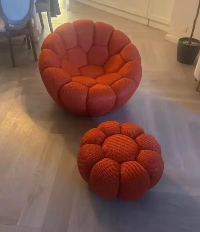 Bring sculptural charm and vibrant color to your home with the Pumpkin Puff Swivel Lounge Chair – where modern artistry meets ultimate comfort.