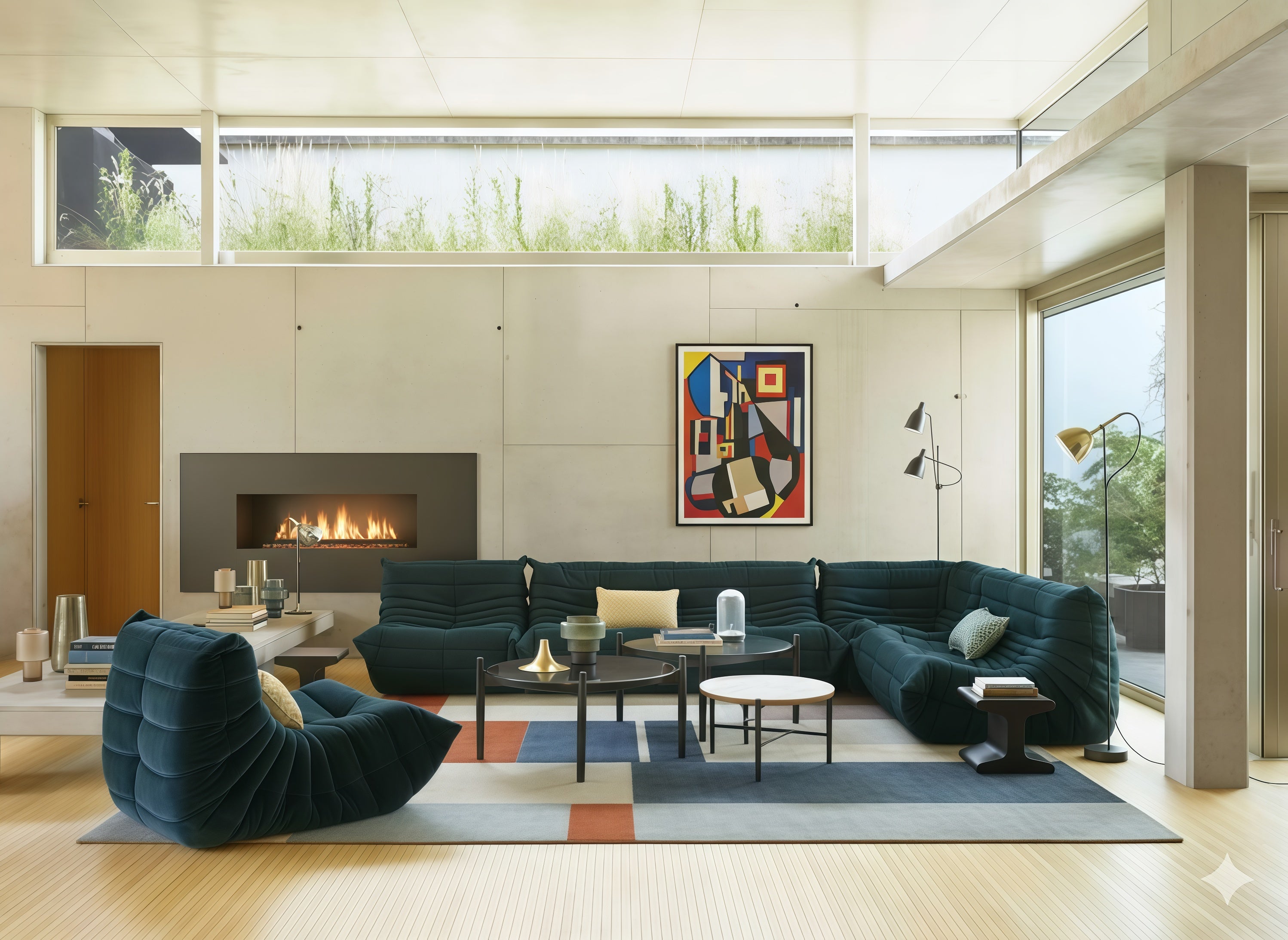 This Togo-style sofa captures the essence of relaxed modernism with its low, sculptural form and signature pleated contours. Soft curves and neutral tones blend effortlessly into contemporary interiors—whether paired with warm wood, soft lighting, or minimalist décor. More than just a seat, it’s a statement of effortless comfort and timeless style.